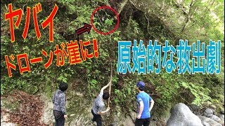 飛行実験前にドローンが墜落して崖に!原始的な救出劇!(自社編)